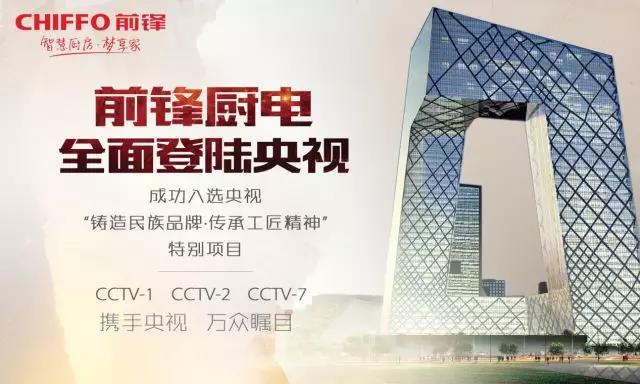 前鋒廚電強勢登陸央視,CCTV-1、CCTV-2、CCTV-7將全面開播