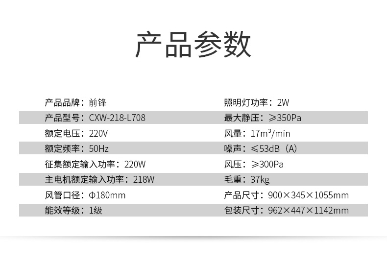 前鋒平板雙吸油煙機L708