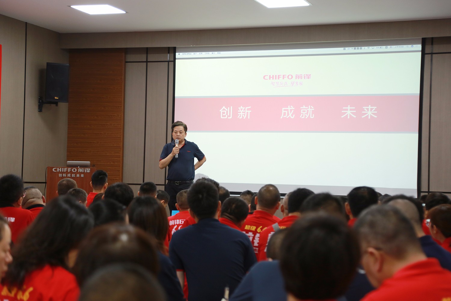集團總經理陳敦勇在紅歌大賽上致詞
