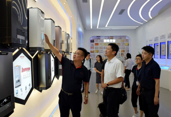 中國(guó)五金制品協(xié)會(huì)專職副理事長(zhǎng)柳潤(rùn)峰、中國(guó)五金制品協(xié)會(huì)副秘書長(zhǎng)蘇安建、中怡康時(shí)代高級(jí)研究經(jīng)理高敏、騰訊家居以及考察團(tuán)媒體成員參觀了前鋒產(chǎn)品展廳、產(chǎn)品實(shí)驗(yàn)室、生產(chǎn)車間及檢測(cè)中心,探秘了前鋒60多年歷史的燃?xì)饩咂放频馁|(zhì)造之道。